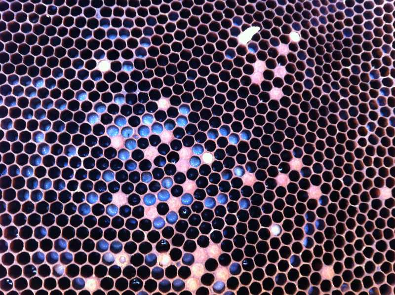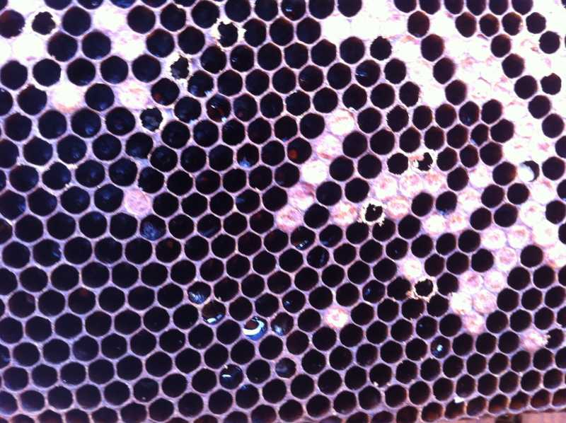 Quand je vois ce genre de phénomène apparaître, larves mortes ou trop de trous dans le couvain, je change le cadre et surtout je change la reine.