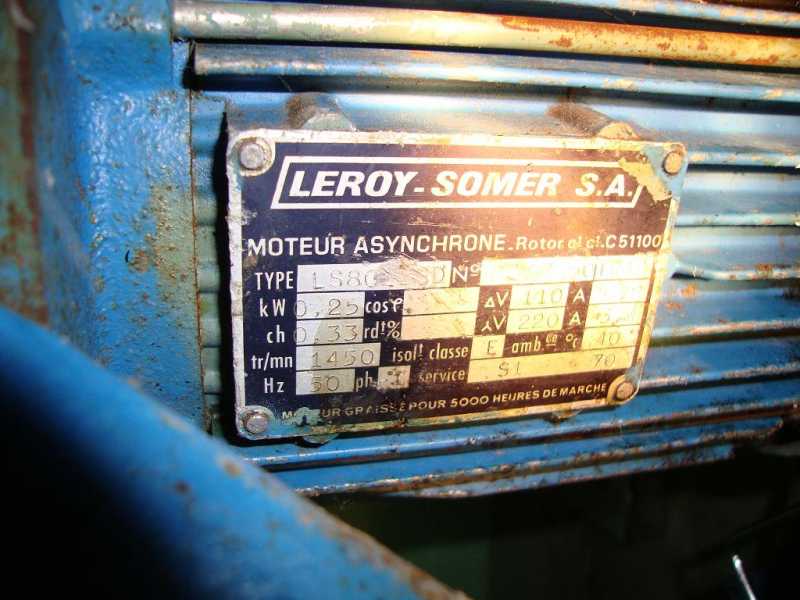 Alors, aujourd'hui je suis allé où tu sais, et j'ai fait une photo du moteur de la centrifugeuse, bin c'est un moteur dit "1500 tour", donc le panier de centrifugeuse monté en bout d'arbre tourne à la même vitesse.
