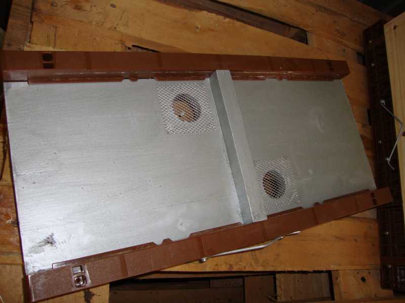 Nota, j'ai un tout petit modèle de nuc, à 2 fois 3 cadrons, (LEGA ITaly) sans ventilation aucune, en période de canicule, les abeilles sortaient (quasiment toutes!) et faisaient la grappe jusqu'à tard le soir, depuis l'ajout de ce trou de ventilation ce problème et résolu. Ventilation: oui, totalement ouvert: non