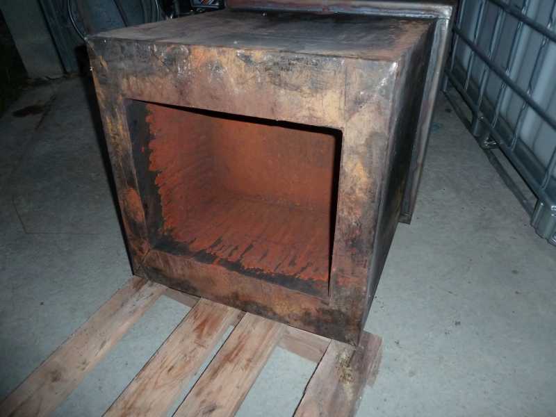 La cuve est au dimension des corps de ruche + 10cm pour permettre une bonne circulation de la cire la hauteur la hauteur d'un corps + 20 cm la j'ai voulu jouer la sécurité en cas de cire qui voudrait deborder( malgré tout ça m'est arrive une fois la blague!!!) le bac est fait en tôle galvanisé de 1,5 mm pour une bonne résistance a la chaleur un couvercle sur charnière sert d'égoutoire et a fermer la cuve en cas de feu.
