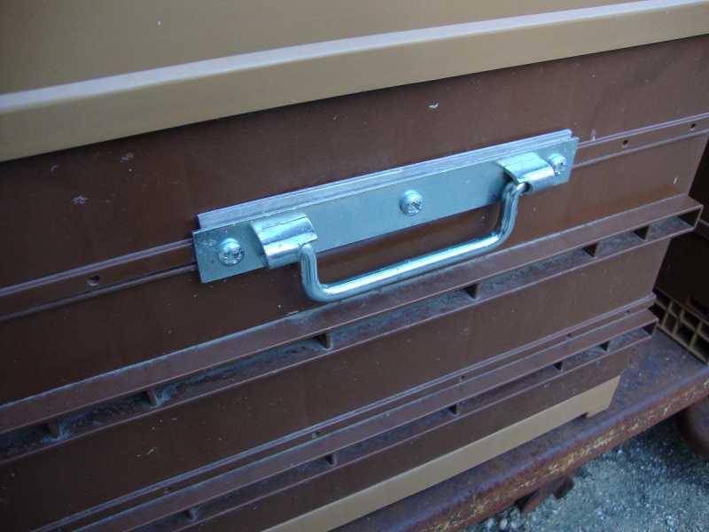 J'avais en projet un dispositif pour porter les ruches plastique, une forme en U qui prendrait sous les tasseaux avant et arrière, comme ctte forme est en métal il est possible d'y souder 2 poignées digne de ce nom, là ce doit être au TOP, mais voilà ...le temps?