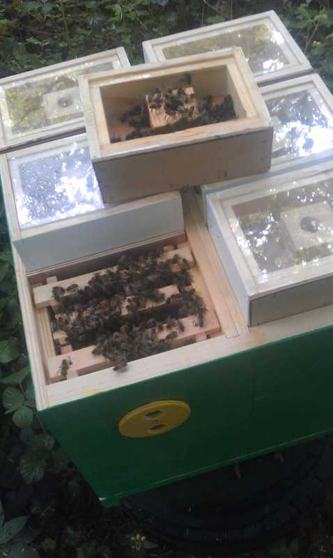 on positionne les cadres et les fait batir dans des ruches fortes.