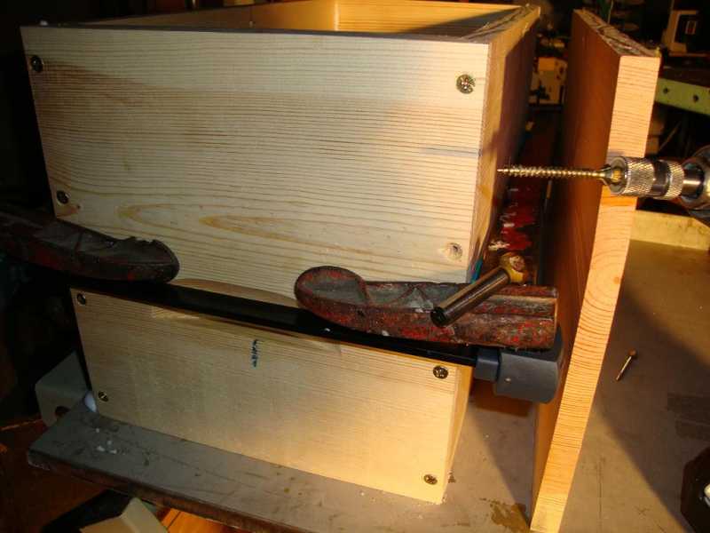 Pour répondre à Prune, avant les photos de ZAYA (tu m'en voudras pas), au sujet des vis par côté ; c'est-à-dire qu'il s'agit d'un assemblage mi-bois donc faut croiser les vis dans les angles (ou les pointes) c'est surtout lorsque l'on utilise des pointes que c'est obligatoire. Avec les vis ça l'est moins mais ça améliore la résistance et le faut équerrage de la caisse surtout en cas de chute accidentelle.