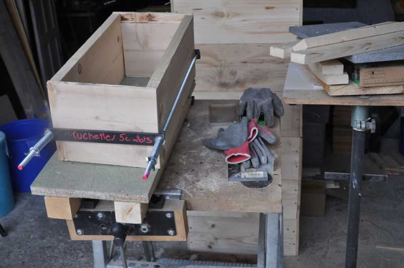 Je suis en train d'assembler mes nuclèis, 500X255X270, un "marbre" 2 cornières fixées d'équerre par des presses et 4 presses pour assembler les 4 panneaux, ensuite vis rocket. Il est indispensable que les panneaux soient déjà d'équerre, sinon, c'est la tour de pise. Attention, il arrive que les panneaux soient un peu voilés, mettre le bombé vers l'extérieur, sinon, ensuite vers le haut de la ruche, les panneaux s'écartent.