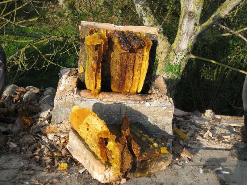 Dans mes 11ans, mon père extrait (à l'ancienne ; enfumage et brûlage de nuit) un essaim d'un vieux tronc avec un voisin. Le miel mangé est sans souvenir particulier, mais le pain de cire récupéré, lui est restait des années a embaumer la pièce qui servait de garde-manger.