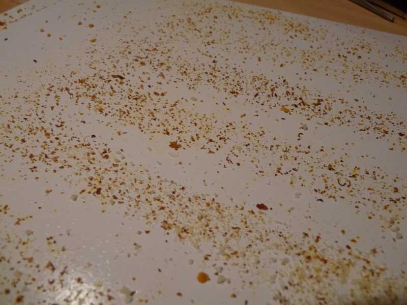 Pour faire l'experience, j'ai fais un comptage varroa. j'ai utiliser un lange blanc enduit de margarine riche en omega 3...!! je l'ai placer samedi 15h et enlever aujourd'hui a la meme heure (3 jours). La meteo a ete assez chaude pendant 2 jours (12° au plus chaud) et froide aujourd'hui