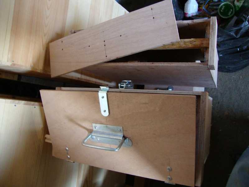 Oui, c'est bien ça, une "caisse" multi-usages, porter les cadres neufs, isoler la reine sur son cadre, "abriter" les cadres de corps lors d'un "dégraissage", mais aussi caisse à essaim, une petit ouverture en bas permet de faire une porte. Une hauteur conséquante entre le bas des cadres et le fond de la caisse, permet de mettre une bouteille d'eau chaude, et plus tard une résitance électrique. Et donc pour les travaux de greffage, donc transport des cadres, j'ai fais une caisse à 3 cadres, c'est beaucoup moins lourd.