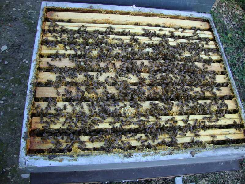Toutes les ruches ont passé l'hiver, entre 4 et 5 cadres de couvain et beaucoup de miel, 4 cadres de miel pour certaines (toutes?)!