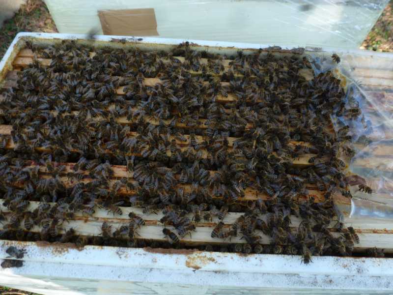 Il y a pas mal de condensation dans certains nucléi, et 2 d’entre eux font déjà de la cire (je suppose que ce son les abeilles de cette année qui la font)