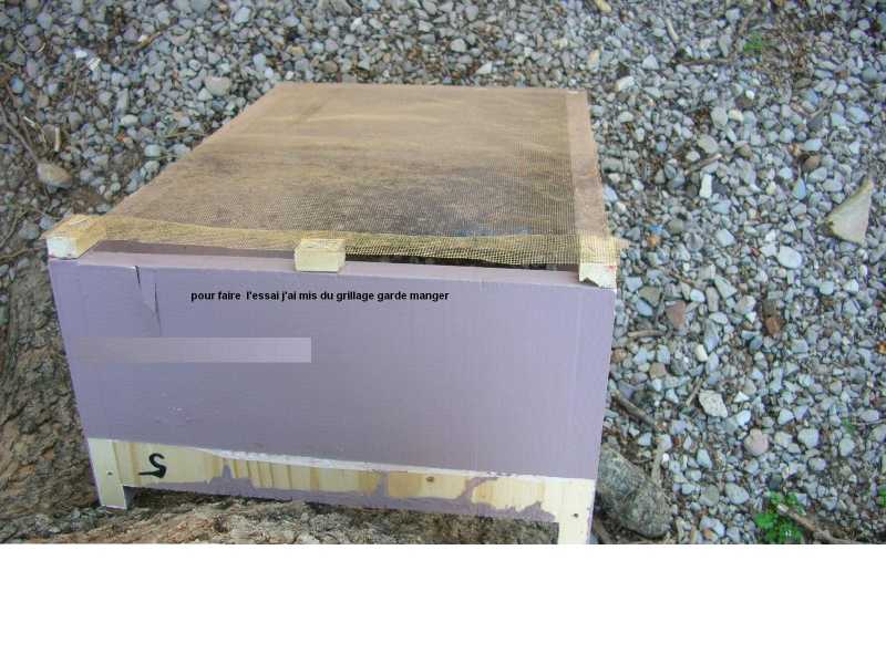 Attention la barrière à reine en portière ne fait pas de miracle il faut quant même visiter toutes les semaines et détruire les CR ou faire des divisions ou enlever des cadres de couvain pour les mettre à d'autres et introduire sur les côté du nid des cires à bâtir etc... chacun fait comme il l'entend. La Barrière à reine c'est juste une sécurité si on voit que la fièvre est bien enclenchée c'est-à-dire si on trouve des CR operculées. Dans ce cas on peut aussi au lieu de les détruire, garder quelques CR operculées du même âge en les protégeant avec des bigoudis. Ça nécessite de découper au cuter la CR, la mettre dans une protection CN7 sur laquelle on met un bigoudi fermé et on le coince entre deux cadres de couvain. Dans ce cas il faudra laisser la barrière à reine jusqu'à la naissance des jeunes reines dans les bigoudis et l'enlever qu'après l'extraction de la dernière reine après avoir vérifié qu'il n'y a pas eu d'autre CR de construite entre temps. En général operculées au même moment elles naissent à quelques heures d'intervalle. Visiter tous les trois jours et les extraire dès qu'elles sont nées pour confectionner des essaims. Si en découpant les CR on attaque un peu la gelée royale ne pas hésiter à fermer le trou avec un peu de cire molle ou de propolis avant de placer la CR dans le CN7. Cette méthode évite de détruire des CR operculées de bonnes colonies et permet de faire des essaims facilement avec des reines vierges.