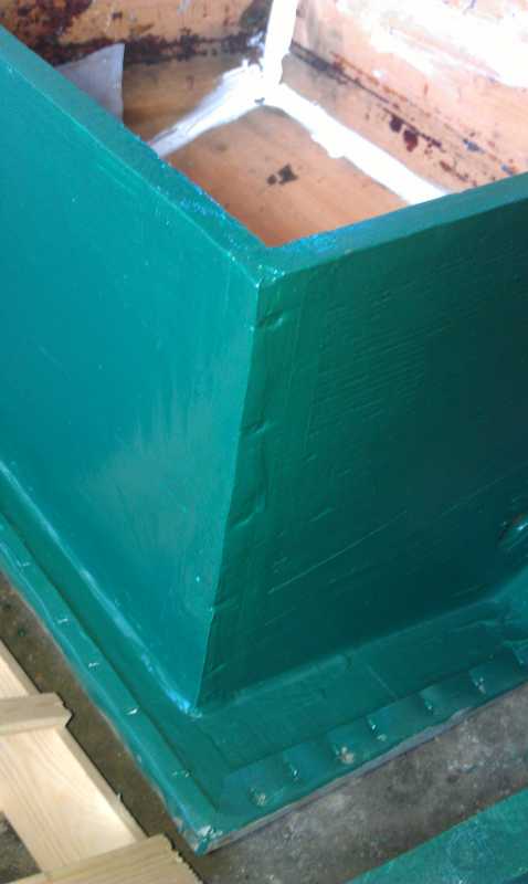 Le toit a été ceinturé par sangle a cliquets ; des visses utilisés pour reprendre les cotes avant masticage aux doigts, auparavant un ponçage en profondeur pour enlever les moisissures et champignons; après plusieurs mois de séchage..