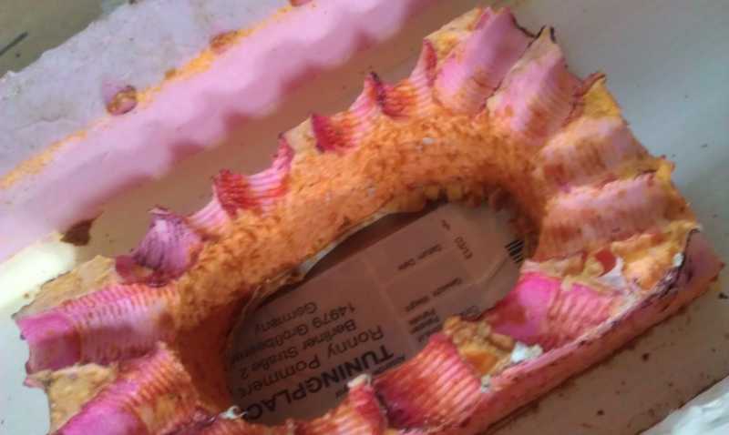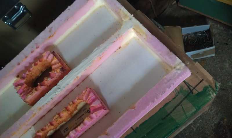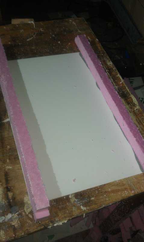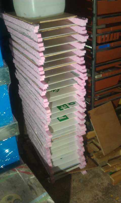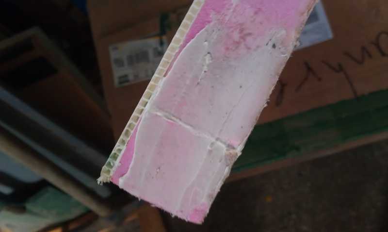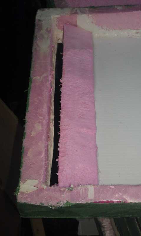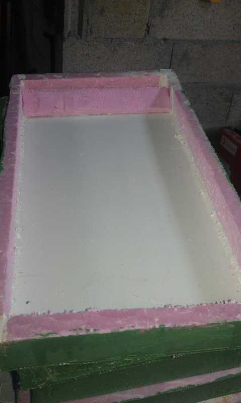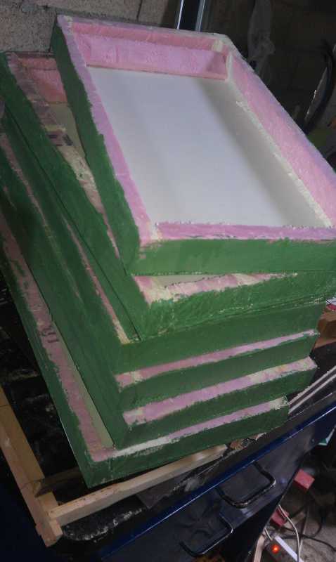 J'ai donc utilisé des feuilles de polypropylène alvéolaire, de récupération( publicité d une société n'existant plus à la déchetterie) et des plaques d'isolants de 40 mm d'épaisseur dont j ai taillé grossièrement à l 'égoine des bandes de 30/40 mm .