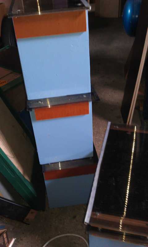 les chutes de contreplaqué marine sont coupées juste à la largeur des ruchettes, ensuite les bouts j agrafe un tasseau pour bloquer la translation, donc la longueur correspond a celle de la ruchette + épaisseur de deux tasseaux.