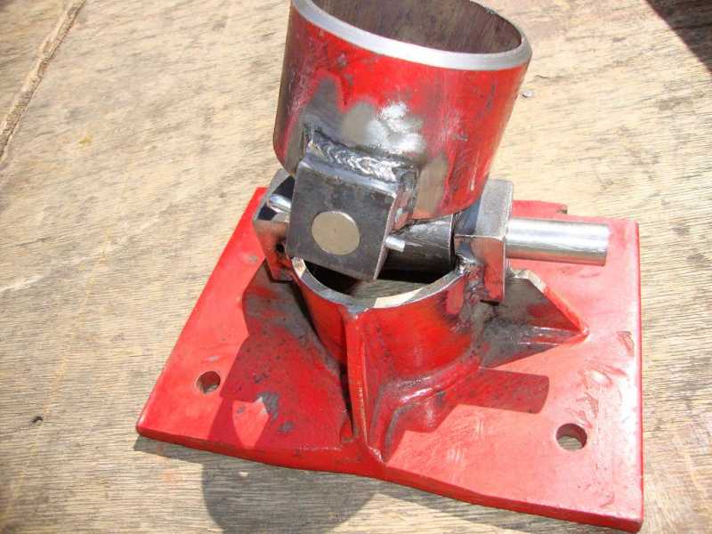 J'ai donc décidé, de tronçonner la base de la platine de fixation, et d'intégrer une rotule "maison", le mat pourra donc être incliné à l'opposé du devers de façon à obtenir un déplacement de la ruche en rotation sur un plan horizontal.