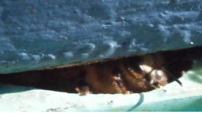 Grillage d'aération (costaud) arraché par le dessous du tonneau, entrée (bonde) lacérée de coups de griffes (très profondes), le bois n'est pas pourri.