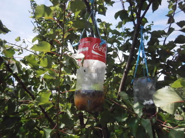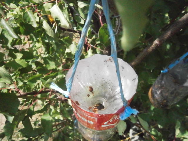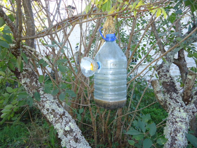 Une fois qu'un est rentré, tu transvases un peu ce liquide (où le frelon a pataugé, cela en attire d'autres), dans un autre piège que tu as fabriqué...