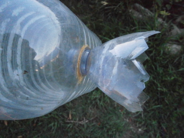 Tu prends une bouteille plastique de 5 L ou plus petite d'eau minéral ou de coca... ou autre marque.