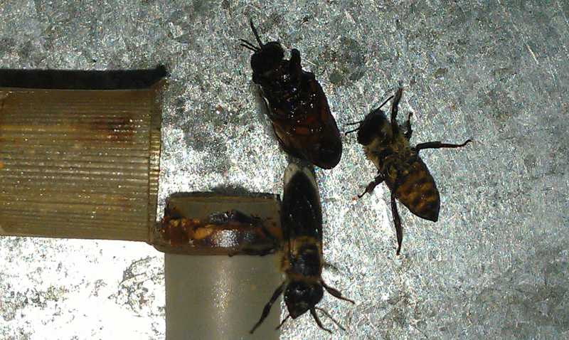 parce qu il y a des cages qui sont arrivées avec les reines mortes engluées dans le candi qui avait coulé.