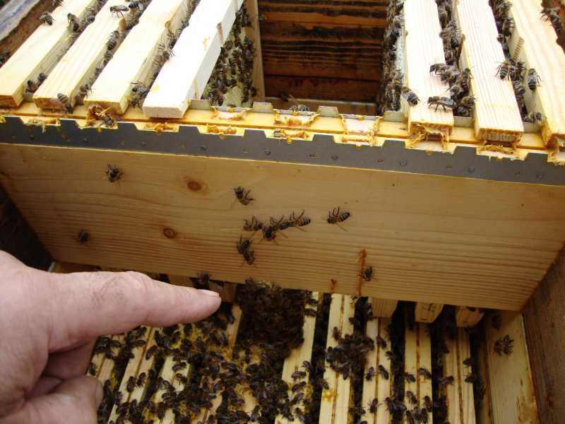 Cette année, le 2 avril, je me suis décidé à mettre en retraite une reine blanche (je te laisse calculer!) le l'ai retirée avec 3 cadres. Le 4 mai, elle était sur 10 cadres, j'en ai repris 4 pour un essaim artificiel, et à nouveau 3 le 31 mai, entre temps j'ai pris des abeilles pour peupler des nucléis. Puis, le 15 juin, pose d'une hausse Langstroth, mais avec des demi cadres, pour nuclèis, elle en est à la deuxième hausse!