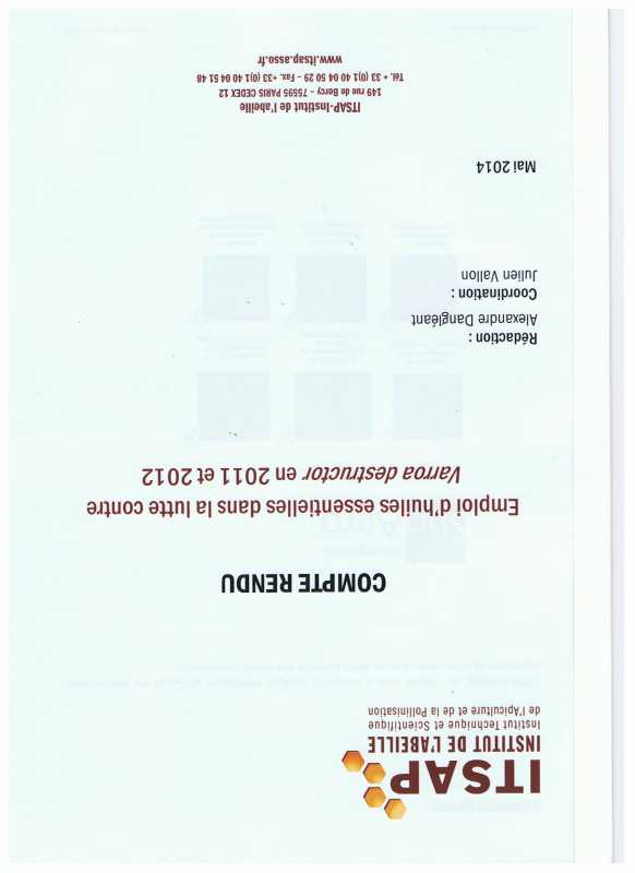 donc la p^remiére chose a faire est d'aller voir par exemple sur le site de l'ITSAP et de regarder les études sur varroa, le responsable est julien Vallon.