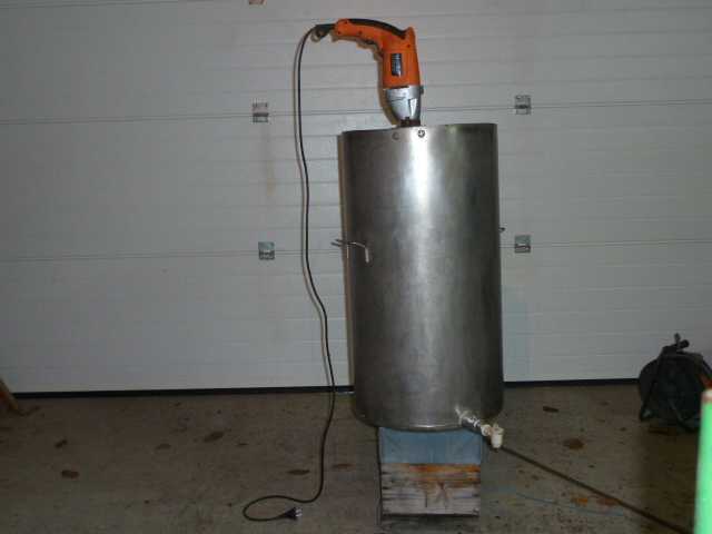 Je prépare mon sirop dans des maturateurs de 400kg. Je transfère avec ma pompe à miel dans une cuve.