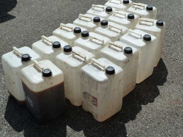 d'où fûts en plastique, je peux y faire jusqu'à 35kg de sirop, je charge les fûts dans le véhicule