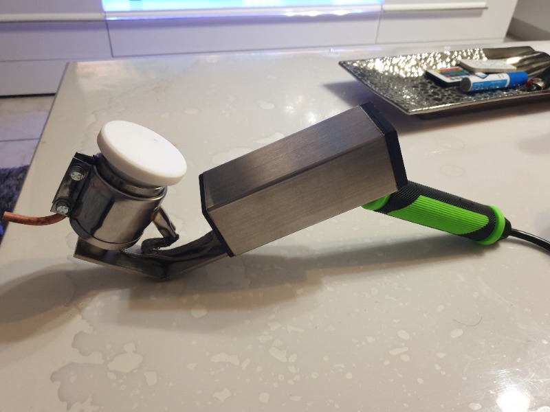 Les avantages: pas besoin de matos en plus (moi je me branche sur la batterie de la voiture avec une pince croco comme rallonge et j'atteins toutes les ruches), et surtout en faisant comme ça tu ne te prends normalement aucunes vapeurs dessus, et le prix