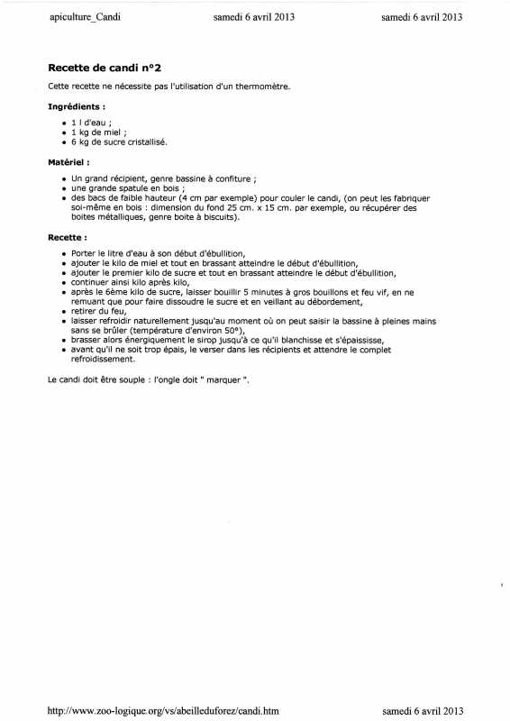Je fais depuis que nous en avions discuté ici mon candi maison, pour moi c'est du candi, il me convient parfaitement, les abeilles le prennent très bien, c'est le principal.