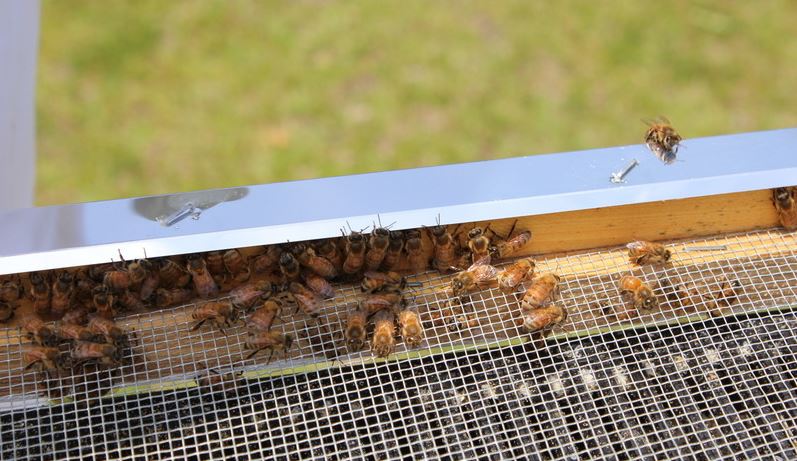 Les coleopteres qui rentrent dans la ruche (par l'entrée normale )sont poursuivis par les abeilles et cherchent à se cacher ,