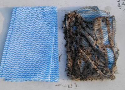 "Les tissus dont je parle peuvent être consultés sur ce site.........au avec un code de produit de 19704. Ils peuvent également être consultés sur le site Chux. Ce sont les tissus lourds qui sont les meilleurs. Ce sont des chiffon de nettoyage avec une série de petits trous pour piéger la saleté. Les abeilles "mâchent "les tissus ce qui les rend "moelleux" et lorsque les coléoptères essaient de les traverser 'ils se font prendre. Certaines abeilles sont également prises, mais pas beaucoup - à la différence des coléoptères qui se prennent des centaines à la fois. Parfois, la quantité de coléoptères piégés est effrayant. "