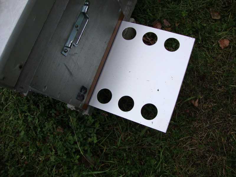 Simplement, au début je fermais avec une plaque pleine, mais les cadres de rives, de chaque côtés était "verts" moisis au printemps. J'ai donc fait des découpes (trous!) à la verticale des zones sujettes à moisissures, depuis, tout va bien, plus de cadres moisis, et mes pépètes ne me fond pas de "bronchite chronique".