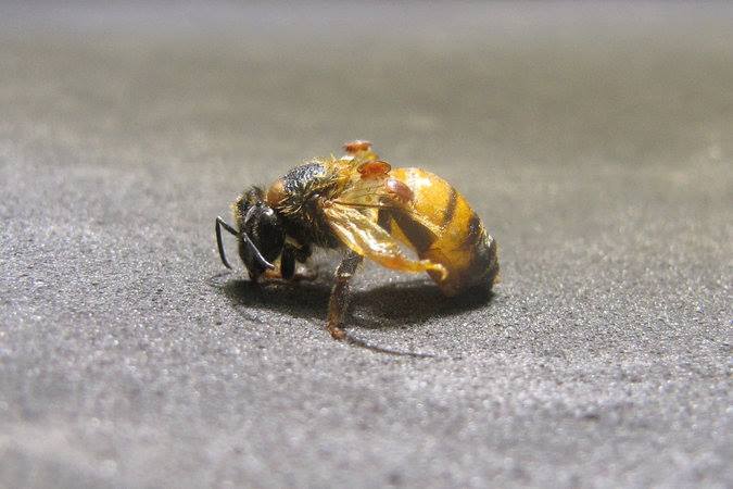 je ne me souviens plus qui à comparé le varroa (à l'échelle humaine) à un crabe qui aurait la grosseur d'un gros tourteau, avec cet exemple, je pense que personne ne tolérerait (rapporté à un chien par exemple) de laisser un animal souffrir d'une telle agression et partirait sur le champ chez le vétérinaire ??