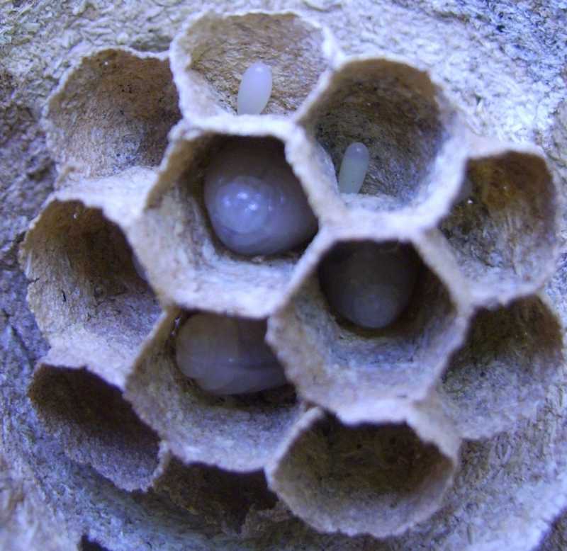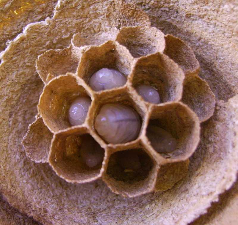 Ci joint les photos du nid à ce premiers stade où l'on distingue parfaitement les larves et les oeufs.