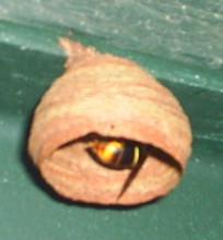 Il s'agit donc ici d'un nid "primitif" que j'observait tranquillement depuis un bon moment quand "tout à coup" (je raconte bien hein JF!) "quelque chose est entré "direct" dans le nid. Je savais qu'à l'intérieur, la fondatrice et sa première ouvrière (première caste) œuvraient paisiblement, rentrant sortant etc...