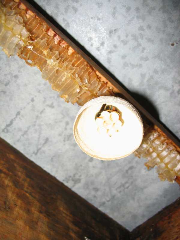 Au passage, vous avez observé une variation de couleur et de texture de l'involucre externe...(enveloppe). c'est le signe des dominations successives. Cette observation là est pour moi une réalité pour l'avoir constaté sur plusieurs colonies primitives observées avec des fondatrices marquées... sur ce lien deux photos.