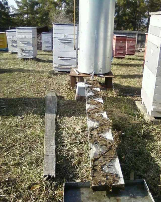 Pense à ne pas refermer totalement le bouchon de remplissage pour ne pas mettre le jerrycan en dépression (empêche aussi cet accès aux abeilles qui se noieraient...une fente suffit pour que pénètre l'air)