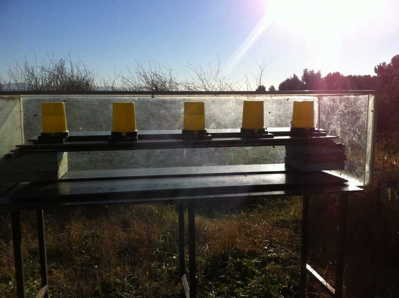 Je le met à une dizaine de mètres des ruches, chez moi, j'en ai deux dans le même rucher.