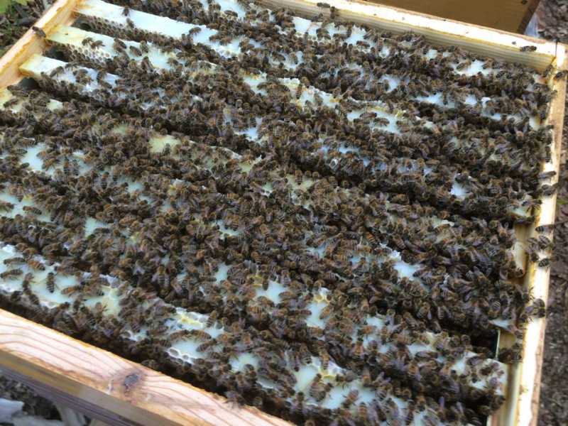 Sur les plus fortes j'ai prélevé des abeilles et un cadre de couvain pour faire des essaims.