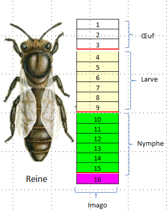 Tout aussi indispensable, présence de la reine pendant le gavage des CR jusqu'au stade nymphale.