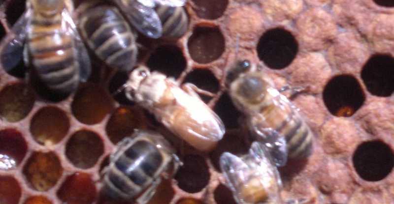 en visitant une ruche cette aprem j'ai repéré trois abeilles très claires, limite couleur crème.