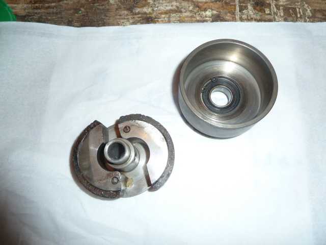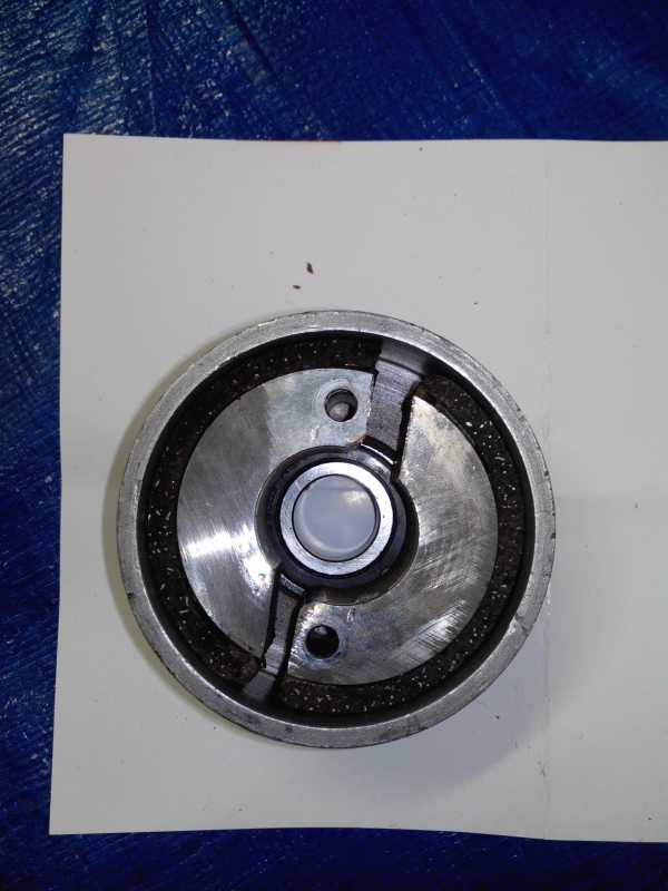 j'ai demonté la poulie , passé un coup de papier de verre sur les machoires en amiante et sur l'intérieur de la poulie