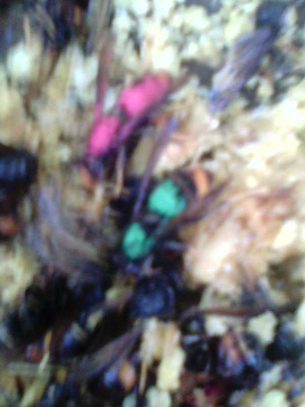 Qui a dit que c'était super facile?.... ben moi! je te dis c'est super facile de marquer un thorax de VV avec un crayon posca pendant qu'il fait sa boulette de poisson....et j'ajoute que c'est sans danger. Le marquage sur le sucré, j'ai essayé il est plus instable, surement parce que moins concentré sur la tache de découpage mais absolument pas agressif.