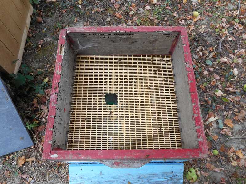 On peut aussi pulvériser un peu de sirop de miel assez lourd à travers la grille (sans ouvrir) pour les "engluer". Pas besoin d'en mettre beaucoup surtout si les abeilles continuent de venir. On peut aussi tout simplement laisser crever sans ouvrir jusqu'à ce que rien ne bouge et réarmer.