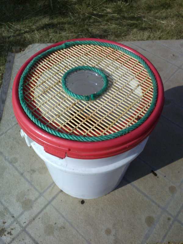Comme le préconise nos conseilleurs patentés(MNHN, ITSAP, FNOSAD, UNAF... etc), j'essaie de jouer le jeu et de piéger "à fond" autour des ruches afin de faire baisser la pression. Je m'y applique, bouteilles et sceaux se remplissent, les grilles anti-intrusions sont en place .... sur huit colonies, il m'en reste six correctes et une patraque.