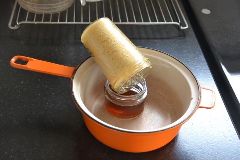j'ai retiré environ 150g de miel liquide de mon pot de 500g.