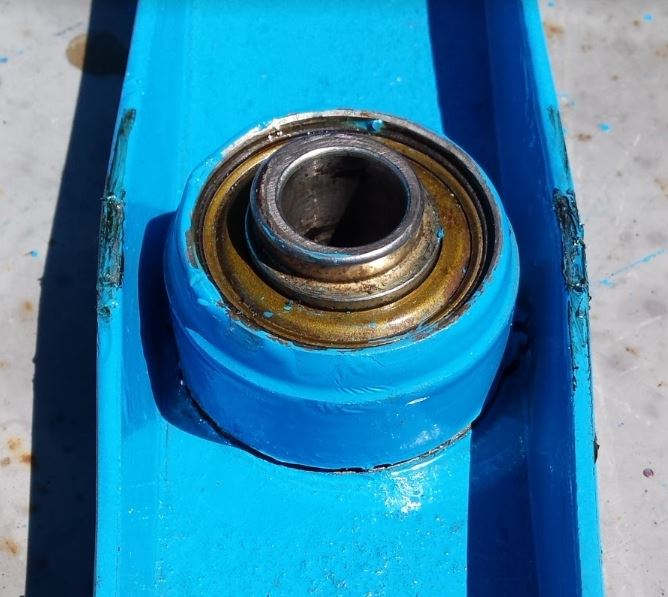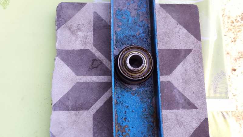 ensuite si tu arrive pas a sortir le roulement de la cage, tu soude un boulon ue tu fait rentrer la ou passe l axe et tu fais levier un peu dans tout les sens pour le décoller , ou tu serre le boulon dans un etau et tu tape sur la barre.