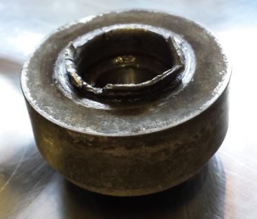 Il m'a fallut faire sauter le sertissage qui maintenait le roulement au couvercle de la minifugeuse, parce qu'à force de recherches (et l'idée de Thierry avec ses boulons) j'ai trouvé de quoi remplacer tout ça.