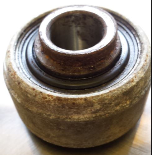 Le dessous de la cage du roulement (la partie "collerette" sertissage a sauté) on voit que le fond est "fermé"
