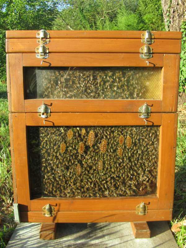 Voila la ruchette d'observation que j'utilise depuis au moins trente ans (pas les abeilles)!!!!!!!!!!