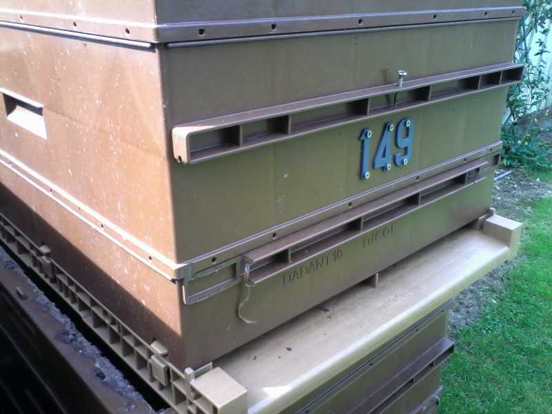 toujours les memes caractéristiques: ruches nicot barreau inferieur coupé au bout pour la trappe a pollen